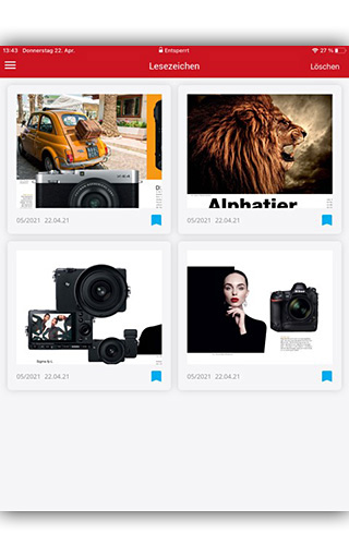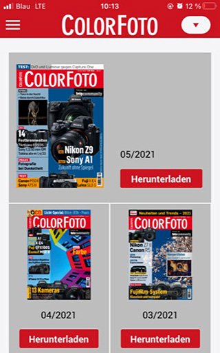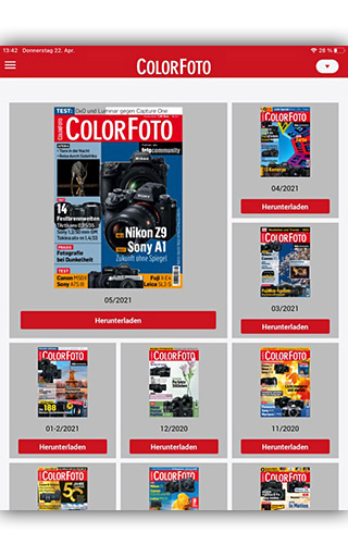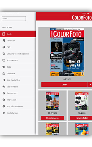 Con l'app ColorFoto ti consente di ottenere tutti i titoli del ColorFoto e fotocommunity per il tuo tablet o il tuo smartphone. La navigazione è molto facile e intuitiva: con una panoramica della pagina si muove rapidamente attraverso l'intera rivista, pagine interessanti che puoi salvare come segnalibri, nel settore dei contenuti troveranno l'elenco completo di tutti gli articoli. Naturalmente, tutte le pagine con due dita possono essere ingrandite e leggere in alto come in formato orizzontale.
