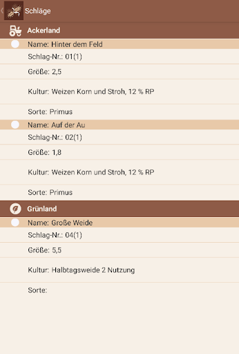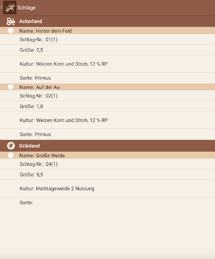 - Dokumentation von Aussaat, Pflanzenschutz, Düngemitteln, Beregnung, Pflege /Arbeitsverfahren mit Arbeitszeiten (und ggf. zusätzlichen Maschineneinsätzen), Ernte, Grünlandverbesserung und Grünlandnutzung