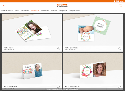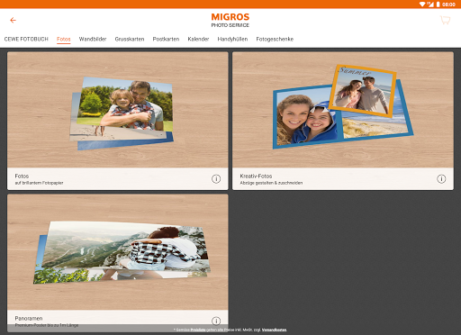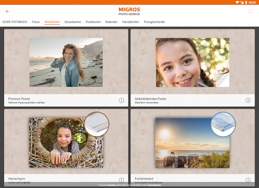 CEWE fotoğraf kitapları, fotoğraf coolders, duvar resimleri, fotoğraflar, kartpostallar ve çok daha fazlası gibi hızlı ve eksiksiz fotoğraf ürünleri oluşturmak için Migros Photo Service uygulamasını kullanın. Sınırsız tasarım seçeneklerini kullanın - ayrıca çevrimdışı. Tüm siparişler evden postayla veya herhangi bir Melektronik Şubesinde ve seçilen Migros dallarında ücretsiz olarak sipariş edilebilir.