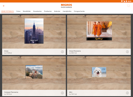 Migros fotoğraf servisi'nden CEWE fotoğraf kitapları farklı varyasyonlarda var. 6 formatın yanı sıra farklı giderler ve kağıt türleri arasında seçim yapın.