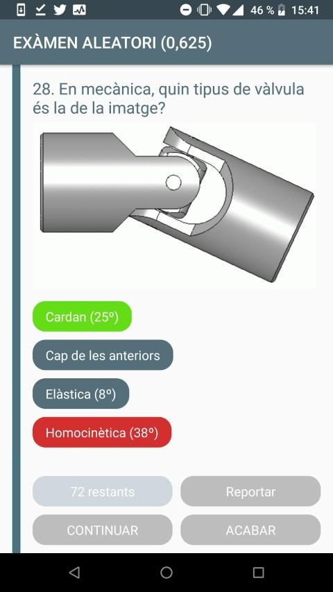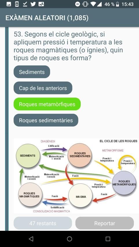 -L'aplicació ofereix la possibilitat de reportar quan una pregunta és errònia o poc precisa, indicant-ne el motiu per a que sigui arreglada.