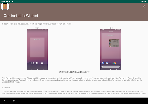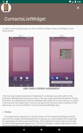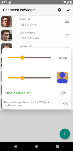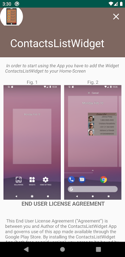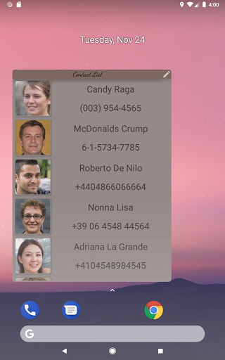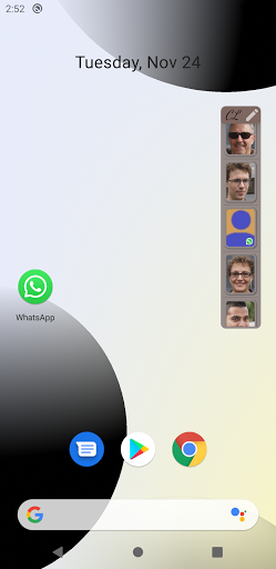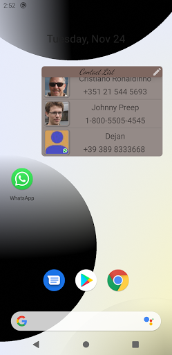This App-widget allows you to call a contact directly from the home screen, simply by selecting it from a previously created list. This person can be contacted either by normal call or WhatsApp. In this case the WhatsApp app must already be installed and the person must already be present among the WhatsApp contacts.