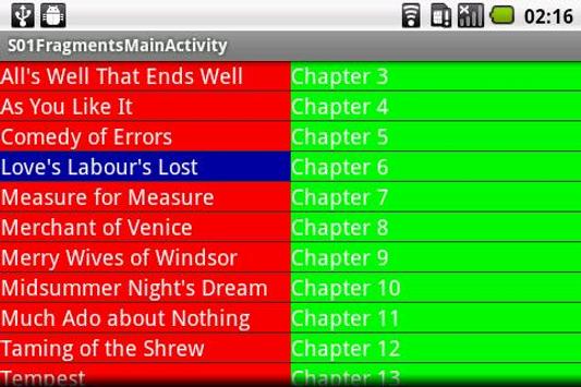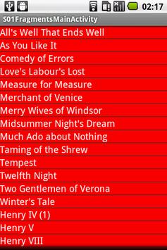 DISCLAIMER: This app doesn't do anything it's just a demo app and it is based on the Shakespeare Fragments example on http://android-developers.blogspot.com/2011/02/android-30-fragments-api.html