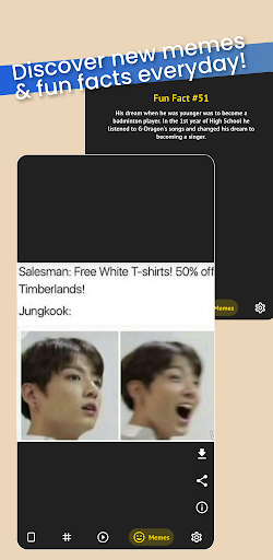 Jeon Jungkook AIO app with Landscape, Portrait & Square, Color Sorted Jungkook Wallpapers, categorized across various Tags, Hilarious BTS Jungkook Memes, Trending Jungkook Videos, cool Jungkook GIFs & lots of Jungkook Fun Facts! presented into responsive and fast app UI ⚡