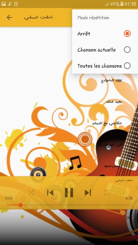 بعد الأغاني التي يحتوي عليها التطبيق