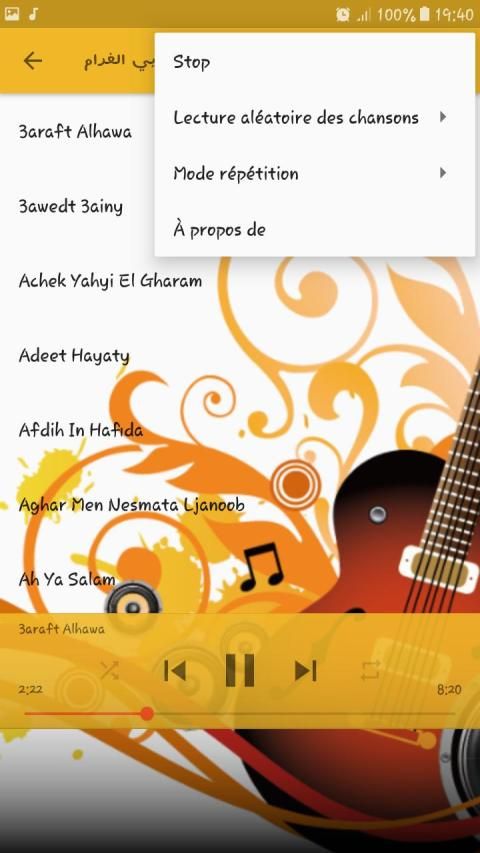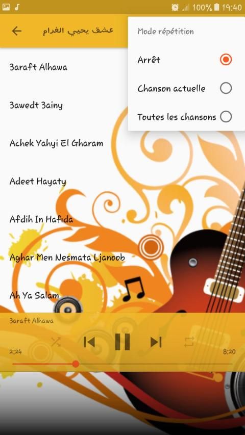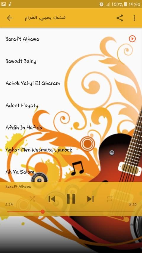 الألبومات و الأغاني التي يحتوي عليها التطبيق