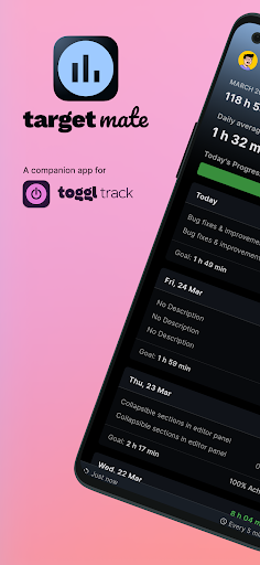 A companion app for Toggl track to track & manage your working hours to achieve your monthly goals. If you're using Toggl Track to track your time then, this app can help you manage your monthly working hours.