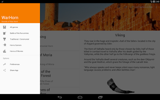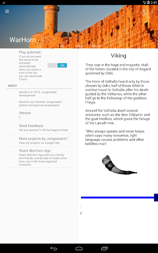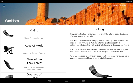 • MULTIMEDIA: Listen to the sound of each horn and learn what the real sounds of some of the best war horns were like. Know and visualize the real image of the battle horn and click on it to recreate the original sound, share the application with your friends and acquaintances.