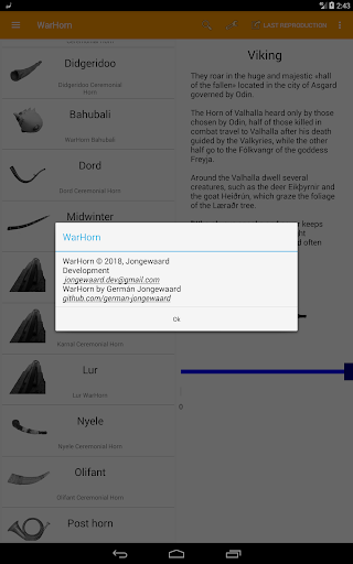 • AND MUCH MORE: Share your favorite warhorn with your friends or acquaintances through different social networks and send email messages, discover a little more about this wonderful world every day, find part of the history of war horns and feel the power to roar some of them.