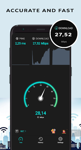 WiFi speed test - Internet Speed Test helps you accurately check ping, check download speed, upload speed test. With the first time installing the application, you are free to check the speed (4 times). Then to continue to check the network speed, you can to watch the rewarded advertisement to get 4 times to check or pay to check the internet speed without interruption (unlimited test).