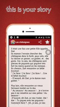 Vous trouverez des tonnes de livres d'histoires gratuits avec des chansons, des photos, des histoires, des narrations et des animations pour vous (parents) et vos enfants d'âge préscolaire! Kids Story Books enseignera les compétences de lecture préscolaire de vos enfants. Conçu pour aider vos enfants, votre bébé et vos tout-petits à apprendre à lire et à reconnaître des mots courants dans un environnement amusant, sécuritaire et éducatif. Apprendre à lire n'a jamais été tellement amusant pour les tout-petits d'âge préscolaire! Support de tablette!