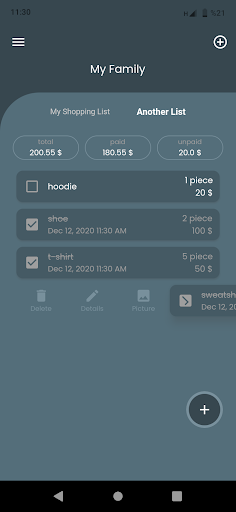 Price tracking: You can separately see the total price of the products in your list, the price of the products you have purchased and the price of the products you have not purchased yet.