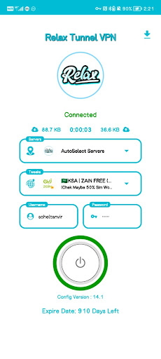 RELAX TUNNEL VPN protects your internet session and helps you access content that is restricted by your ISP. this works because your data is securely transported through our very fast and secure. servers that have unlimited access to the web, which also means that your real IP address is hidden from the web, providing you security and anonymity....
