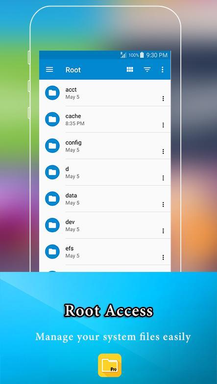 File Manager Pro(File Explorer) helps you handle all your files whether they are stored in your device's memory, microSD card, local area network, and root folders.By default, File Manager Pro (File Explorer) allows you to copy, move, rename, delete or share files to and from any of your storages. It also lets you browse and access your files by category.