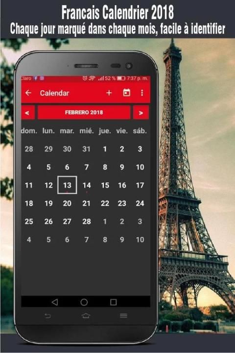 The new application french 2018 calendar with days free holiday to share, plan your days and holidays is now available in the store for use on Android mobile devices.