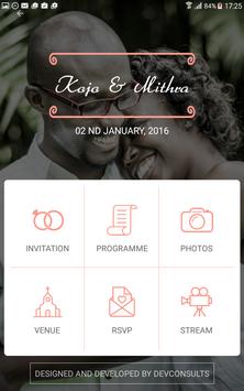 This app can be used to respond to our invitations, view our gallery of photos, get the map directions to our venues, watch live feed of the ceremony starting January 2nd, 2016 and many other functionalities.