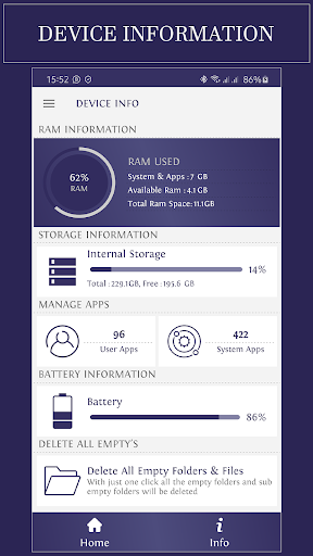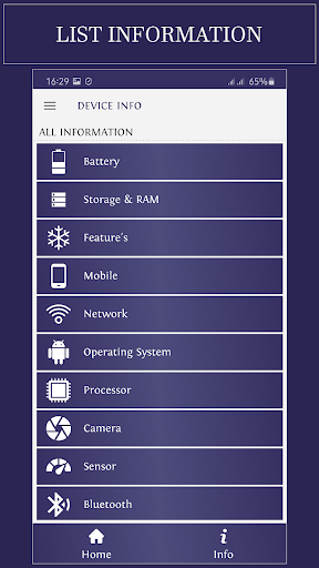 ★ Device Info includes information about: