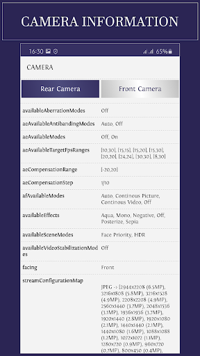 – Feature's: In this feature you can view all the features that your device supports, such as (Bluetooth LR, GPS, Camera Flash, Camera Front, Microphone, NFS, Multitouch, Audio Low-Latency, Audio Output, Professional Audio, Consumer IR, Game pad Support, HIFI Sensor, Printing, CDMA, GSM, Fingerprint, App Widgets, SIP, Sip-Based VO-IP).
