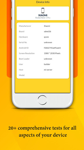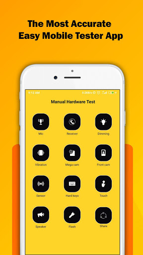 Also, MobiTest can test your device components such as Display, Multitouch, Flashlight, Loudspeaker, Ear Speaker, Microphone, Ear Proximity, Light Sensor, Accelerometer, Vibration, WiFi, Bluetooth, Fingerprint, Volume Up Button, Volume Down Button.