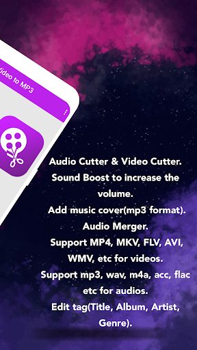 you can cut and trim video files, merge audio and convert video to MP3 with many options in a few seconds With the Fastest video to mp3 converter, now You can extract high quality mp3 songs from video quickly.