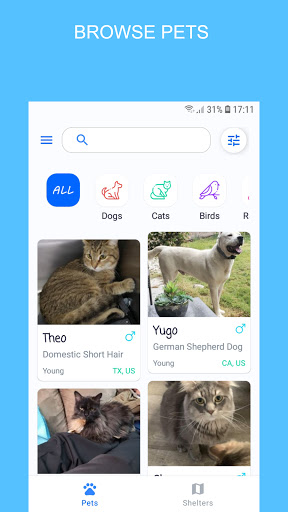 • FILTER RESULTS: Find a dog or cat by filtering the breed, age, size, gender,
