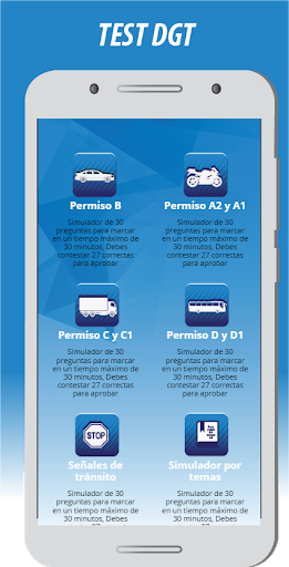 La aplicación contiene más de 1.200 preguntas de conducir de autoescuela rigurosamente actualizados y suficientes para que puedas preparar el examen de los siguientes permisos: