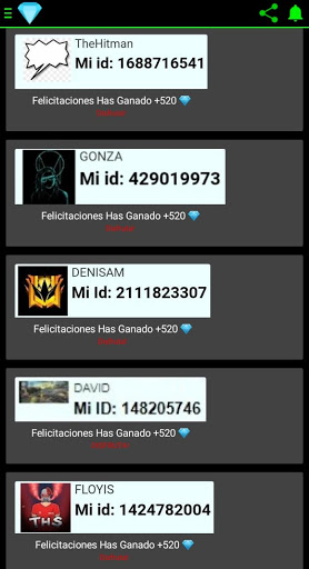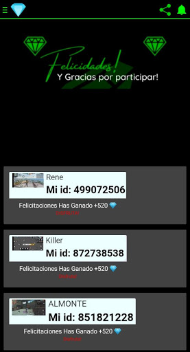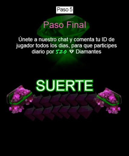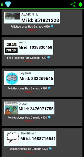Uygulamaya katılın ve ücretsiz elmasları kazanmak için günlük çizimlere katılın, en iyisi Hiçbiri biriktirmeyi bir araya getirme ya da hiçbir şey kurtarma, basitçe senin kimliğinizle, çizimlere katılabileceğiniz, hesabınıza ya da böyle bir şey vermeniz gerekmez, kimliğiniz hakkında yorum yapın ve bu uygulama ile Raffle'a katılın. Oyunun birçok işlevine erişebileceğiniz ücretsiz ateş için elmasları ücretsiz almaya başlayabilirsiniz.Onları doğrudan ücretsiz yangın hesabınıza gönderin, yalnızca kimliğinizi sağlayarak, çok kolaydır.