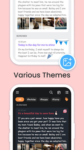 Use your photo, choose the color you want, and add a little tweak to your liking and you've got a new theme for your own diary app.