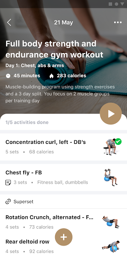 Optional nutritional plan. Counter of kcal and macronutrients.