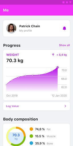 * Digite seu peso e outras estatísticas e acompanhe seu progresso