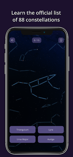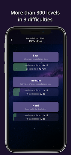 Easy levels show the lines of the constellations, making the experience less similar to the real night sky, but it's the first step of learning.
