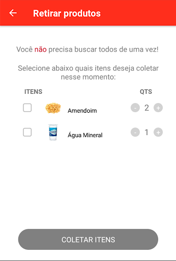 Colete seu pedido no balcão selecionando quais itens deseja coletar e mostre o QR Code. O atendente irá ler o código e entregar os itens. Simples assim!