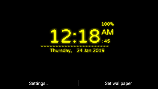 Digi Clock as application or live wallpaper that show displays currunt time, date, day of week, battery in percentage, AM-PM formate seconds and etc.
