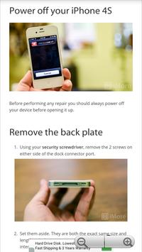 Want to fix your Iphone 4s? Now you can easily fix your iphone 4s via this application. This application would display step by step tutorials from the http://www.imore.com website.