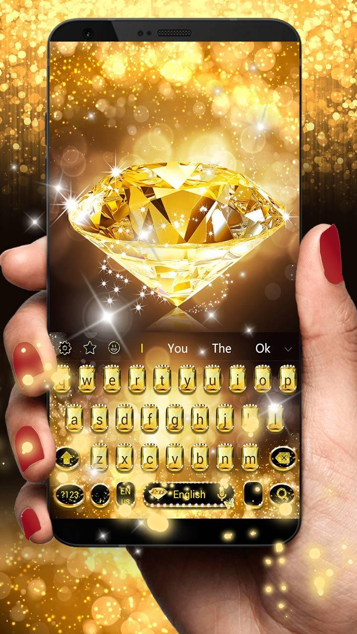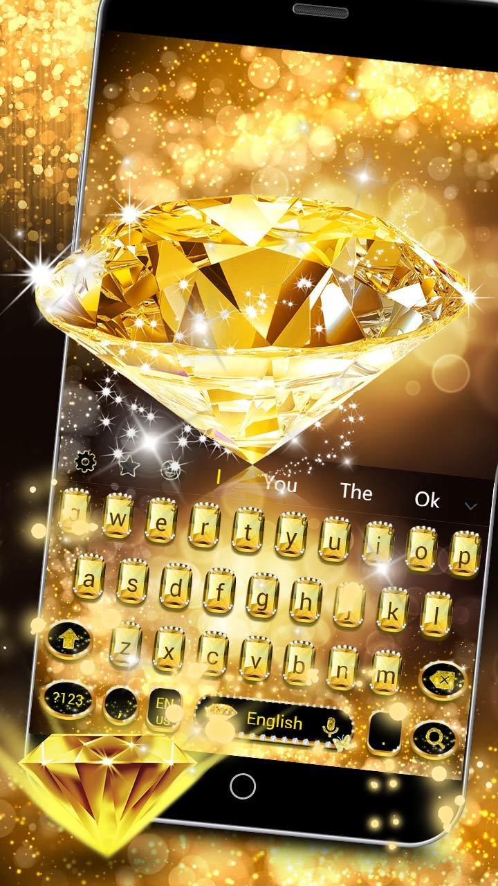 DIY keyboard theme with gold diamond keyboard wallpaper and gold diamond glitter. Get gold diamond keyboard theme with shining diamond gold wallpaper free.