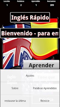 Inglés Rápido is an application that helps individuals who speak Spanish learn to speak English quickly. It is based on the premise that 75 percent of the English language spoken only uses about 400 words. If you learn 400 words in English, you will be able to replace them in their Spanish counterparts appear in speech. This allows you to understand about 80 percent of what you speak and understand about 80 percent of the time. Lite version for 10 words only.