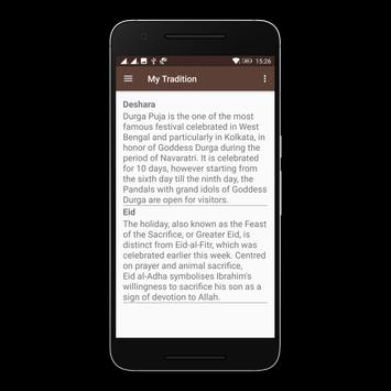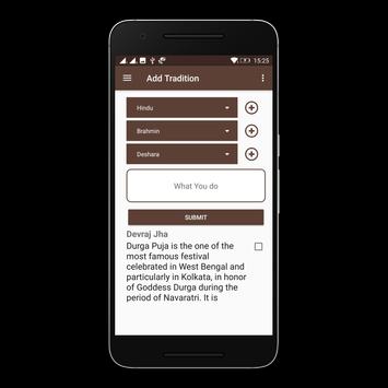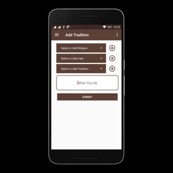 >> User can add traditions by religion and cast. What they do on that day. This traditions also viewed by others