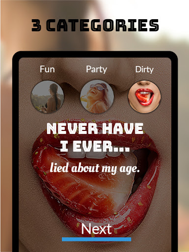 Never have I Ever is the ideal game for parties and pre-parties. The app contains hundreds of questions in the categories Fun, Party and Dirty. Fun is for casual use, Party is for parties, and Dirty is for the naughty 😉 The game is easy to learn, so just get started!