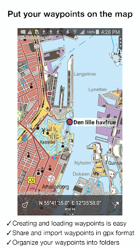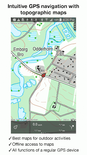 Makes from your phone or pad a complete GPS device with the detailed topographic map of Denmark. Viewed maps will be stored on your device so that Topo GPS can also be used without an internet connection.