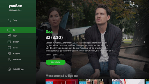 Med YouSee Tv & Film app’en kan du se tv, film og serier på Android Tv. App’en samler dine tv-kanaler, massevis af film, serier og lejefilm og Danmarks største børneunivers.