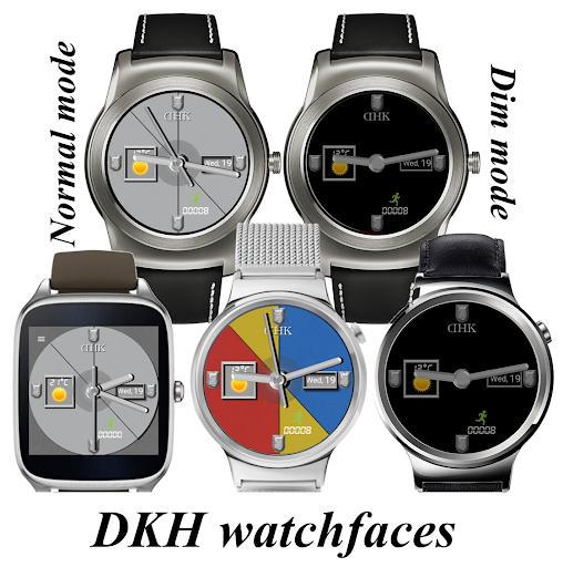 DKH Classic 2.0 for watchmaker (for Round, Moto 360 Style and Square) is simple minimal design with 3 background elements (left, centre and right) and each element comes with 6 colour options. You can choose one color for all the 3 elements and keep the watchface simple or choose different colour for more colorful watchface. To keep it simple and informative I just added weather, day-date and step counter.