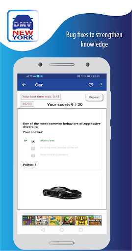 DMV New York, preparation for the driving knowledge test. If you are waiting for the date of the car driving test, Motorcyclist, Commercial CDLs, this application is definitely for you. This New York driver's license test application is specially designed for people who want to take the DMV permit test in New York. With this New York permit test practice application, you can practice the driving test questions you take on the test similar to the New York Department of Motor Vehicles.