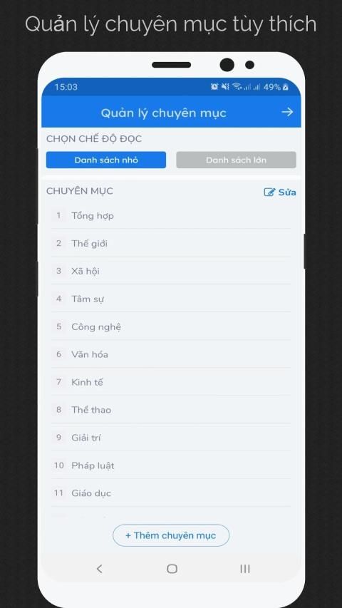 - Người dùng có thể quản lý các chuyên mục muốn theo dõi