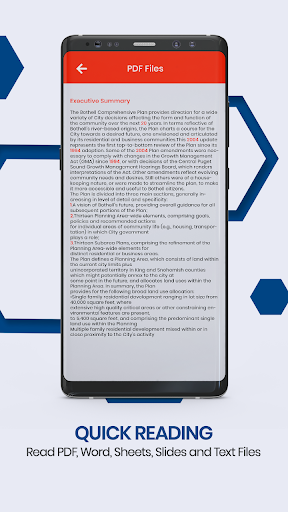 Supporting all world formats PDF reader app, PPT, RTF, DOC, ODF, XLSX.