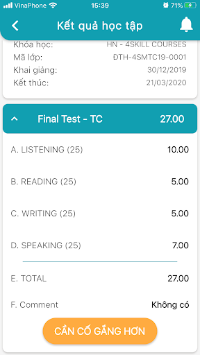 Cập nhật chi tiết bảng điểm.