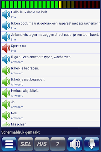 The deaf and hearing impaired user can also reply by means of the built-in text-to-speech voice. He or she may also select a short text from a list with standard texts that will then be read aloud. This text-to-speech feature is especially useful if the user has difficulty speaking in a clear and intelligible manner.
