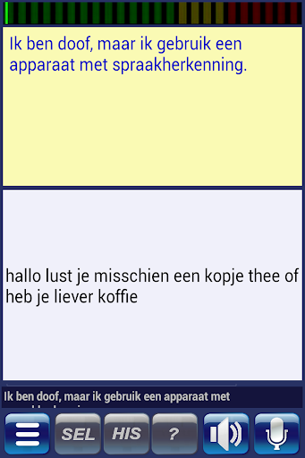 Strongly improved version. The deaf interpreter can now be switched to a number of other languages. The Dialog history can be saved, if so required (settings).