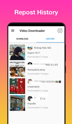 6. History management, save and manange download video and photo that you downloaded from Instagram