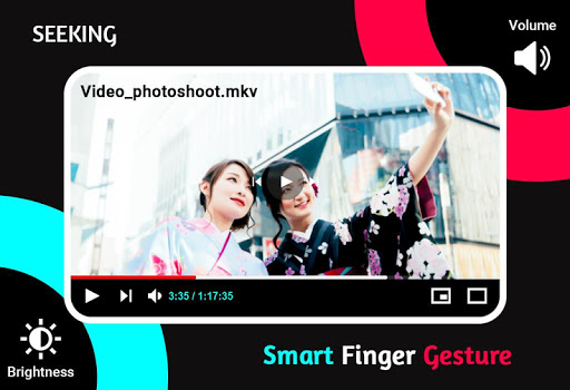 Video Player supports gestures to easily adjust the screen brightness and video volume when you are watching the video. And you can click the button to quickly control the videos’ progresses and the last or next video to play.