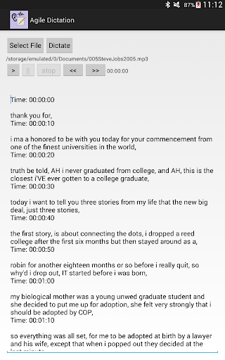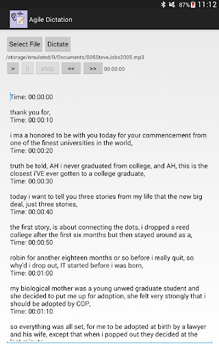 Agile Dictate makes audio transcription is easy for you to get high quality transcripts of your audio files such as mp3, wav and caf in quiet environment.